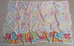 kain dengan motif bunga Malino dengan perpaduan aksara lontara khas Makassar